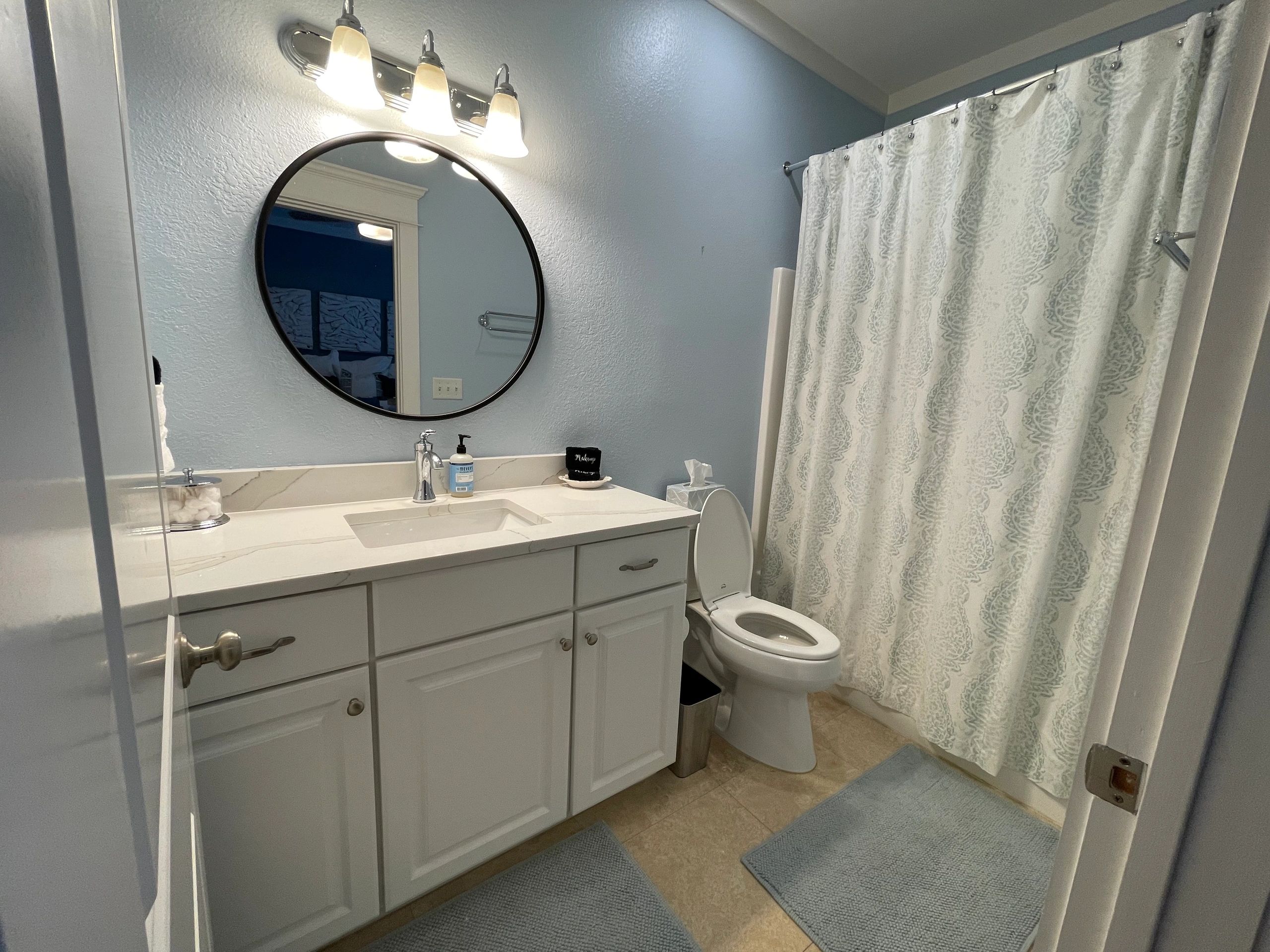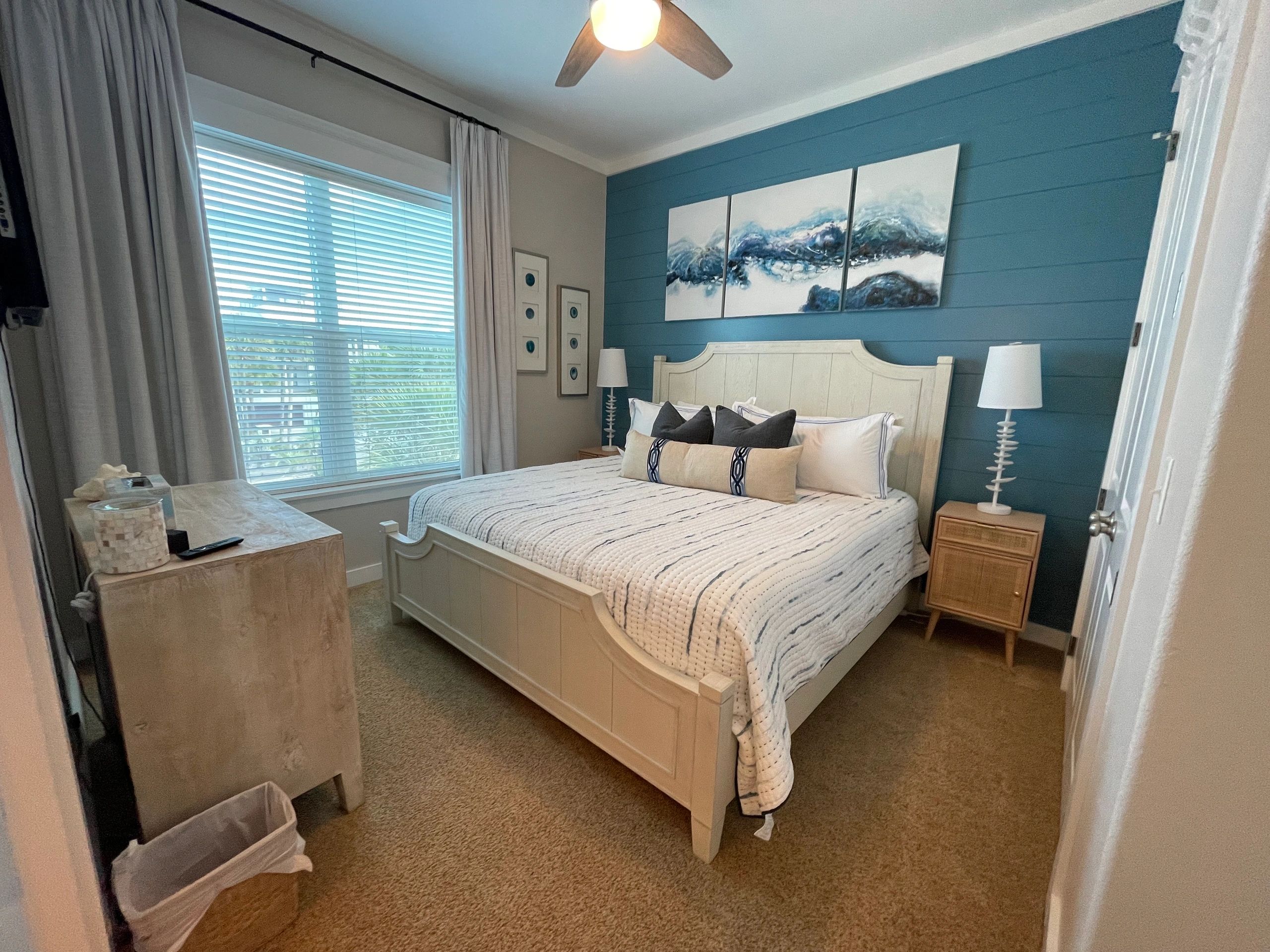 This comfortable king en-suite with a full bathroom is perfectly situated on the second floor. A great choice for solo guests or friends seeking room together bond and save.