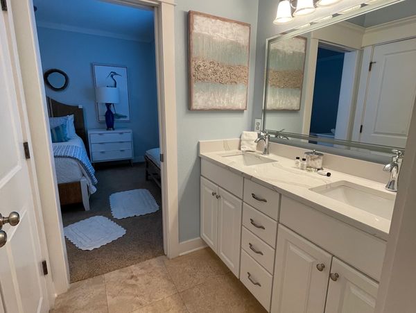 Designed for comfort and connection, this third-floor retreat features a king bed, built-in bunk beds, and a spacious bathroom with a glass-enclosed walk-in shower and private toilet area—ideal for friends sharing the experience
