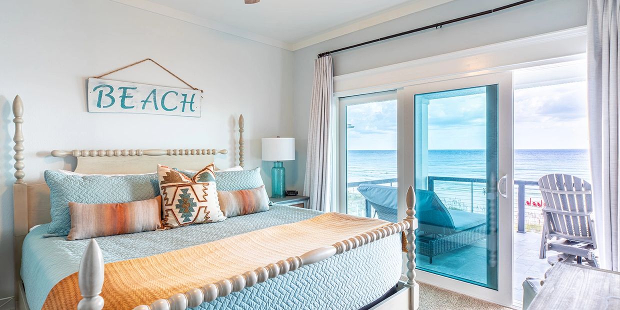 Step into coastal luxury with this spacious King En-Suite, featuring balcony access and breathtaking oceanfront views. Perfect for girlfriends that want to room together bond and save, it includes an adjacent built-in bunk room and a full bathroom with a double vanity along with private shower/tub combo.